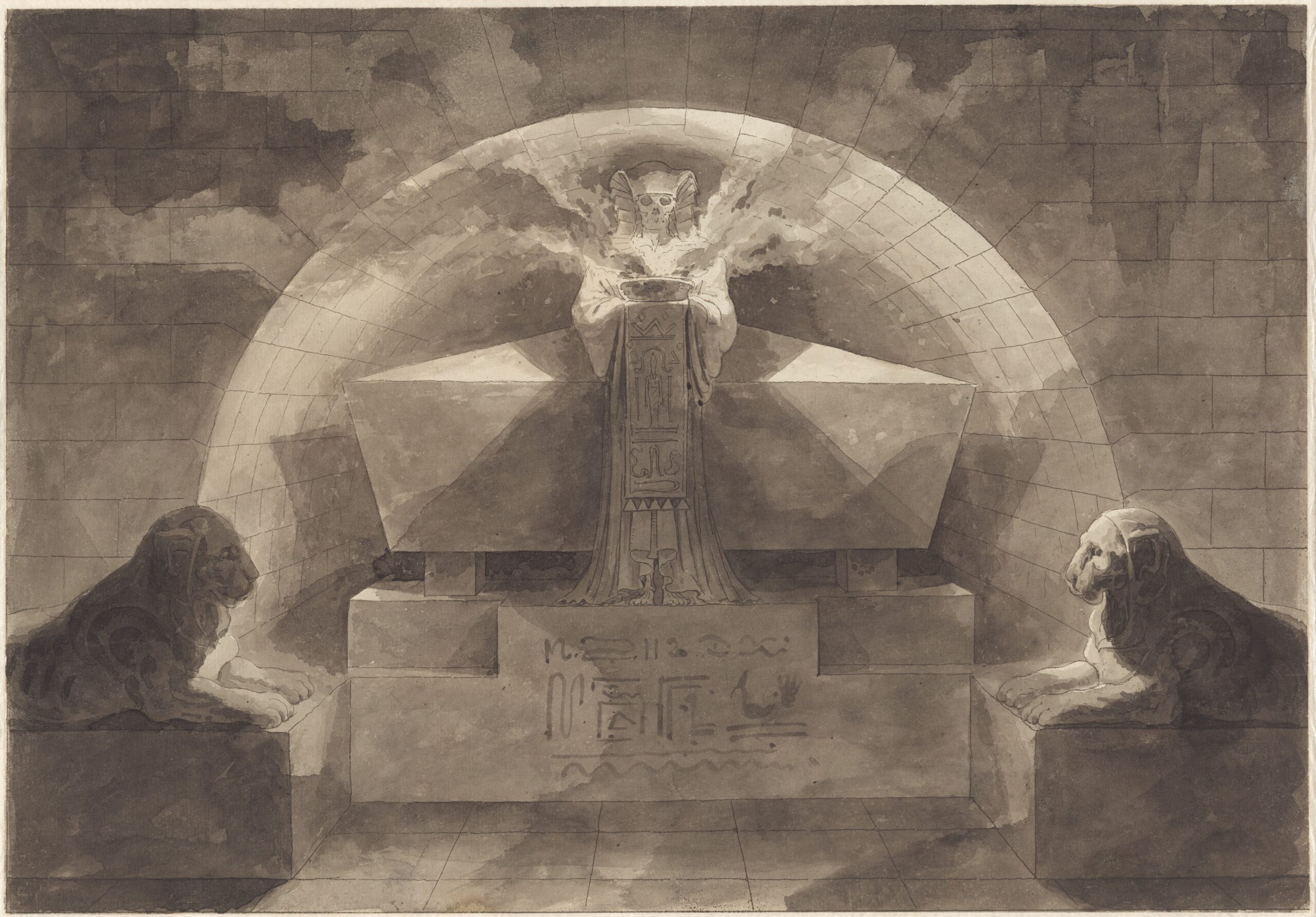 Art: Tomb with Death Standing by Louis-Jean Desprez